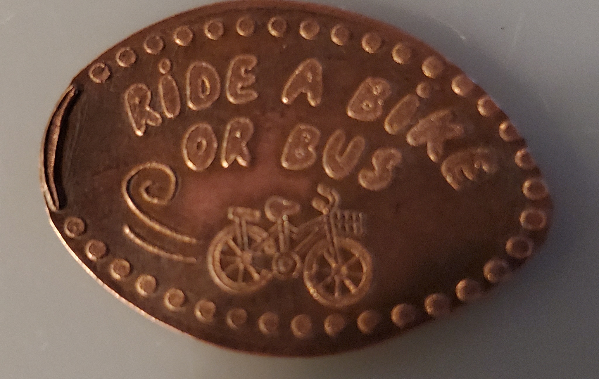 Featured on the Balcony of the "Air Out There" exhibit, the penny press machine focuses on more generic healthy activities including "Ride a Bike or Bus"